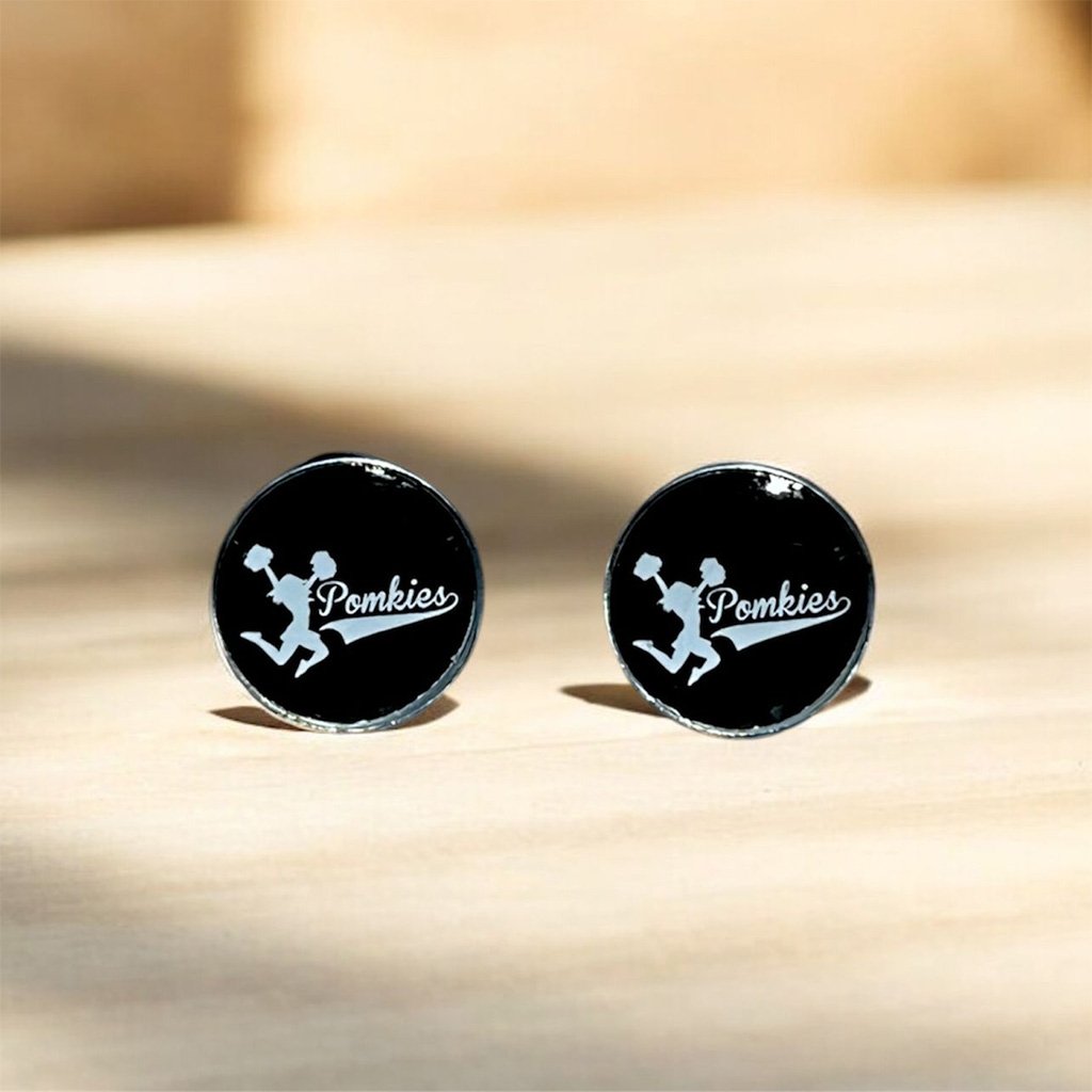 Náušnice Pomkies z chirurgické oceli, zalité pryskyřicí. Jsou lehké, odolné a vhodné na každodenní nošení. Průměr náušnic je 12 mm a na výběr je visací nebo puzetové provedení.